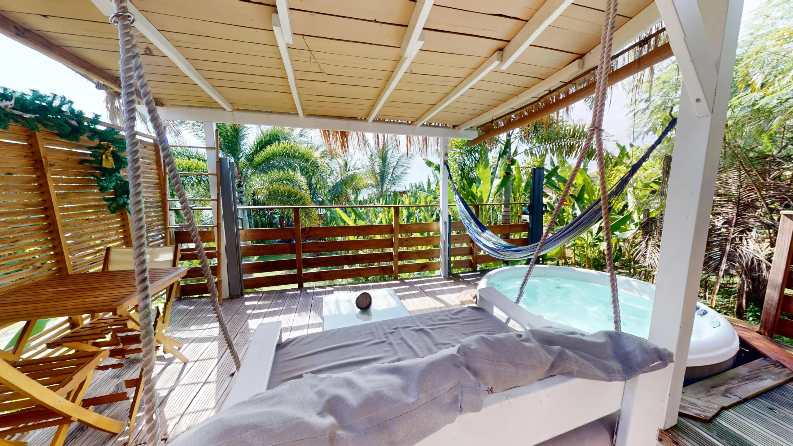 Moonlodge, c’est l’expérience poétique par excellence : un lodge insolite au toit panoramique qui vous invite à contempler les étoiles depuis le confort de votre chambre. Pensé pour une immersion totale dans la magie des Caraïbes, il associe design élégant, confort moderne et ambiance intimiste. Sa terrasse privative et son jacuzzi exclusif prolongent vos instants de détente en plein air.