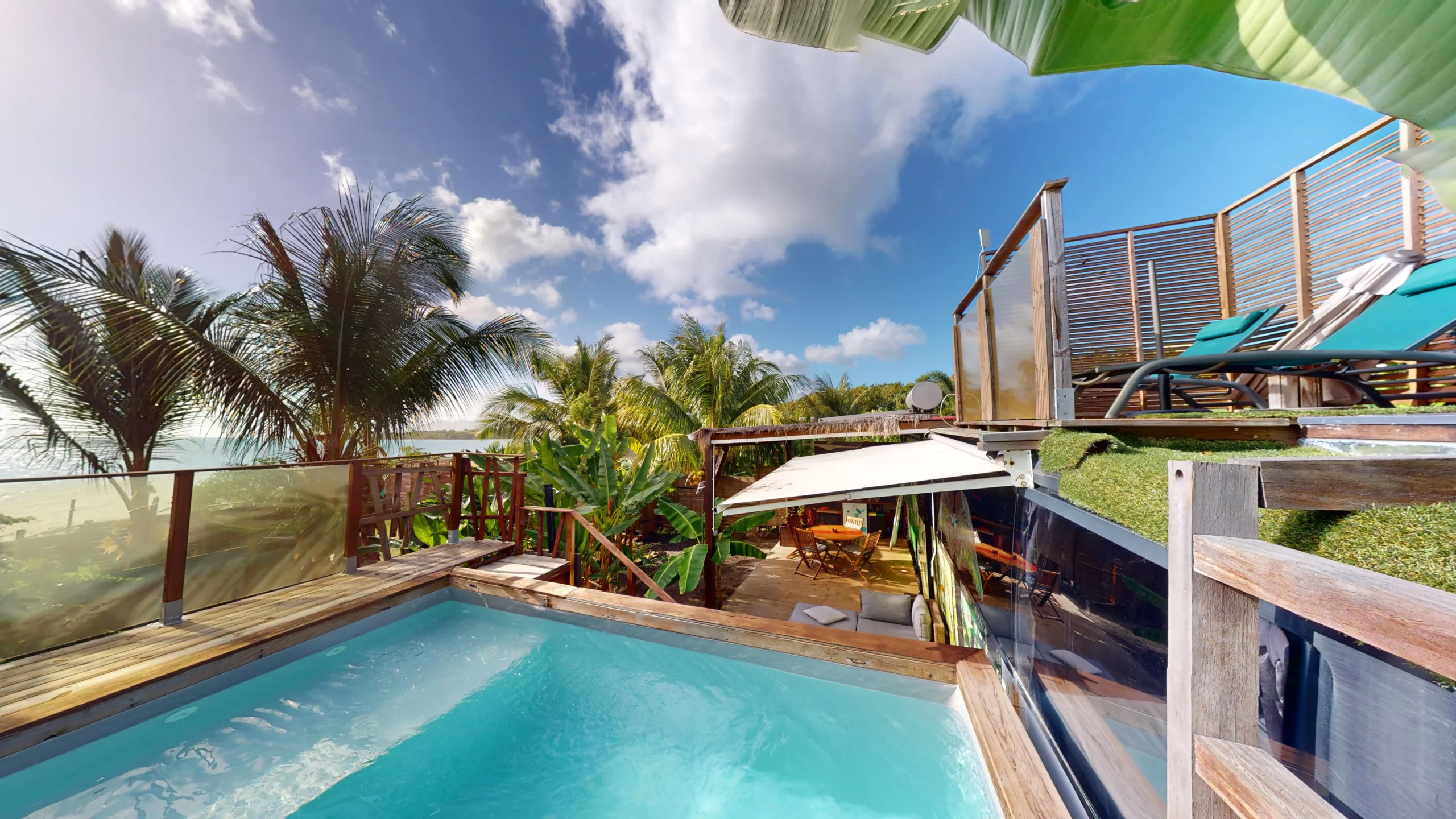 Profitez d’un rooftop avec vue mer imprenable pour vos soirées sous les étoiles et rafraîchissez-vous dans votre piscine privée, véritable écrin de détente face aux Caraïbes. Chaque espace a été pensé pour mêler originalité, confort et moments inoubliables.