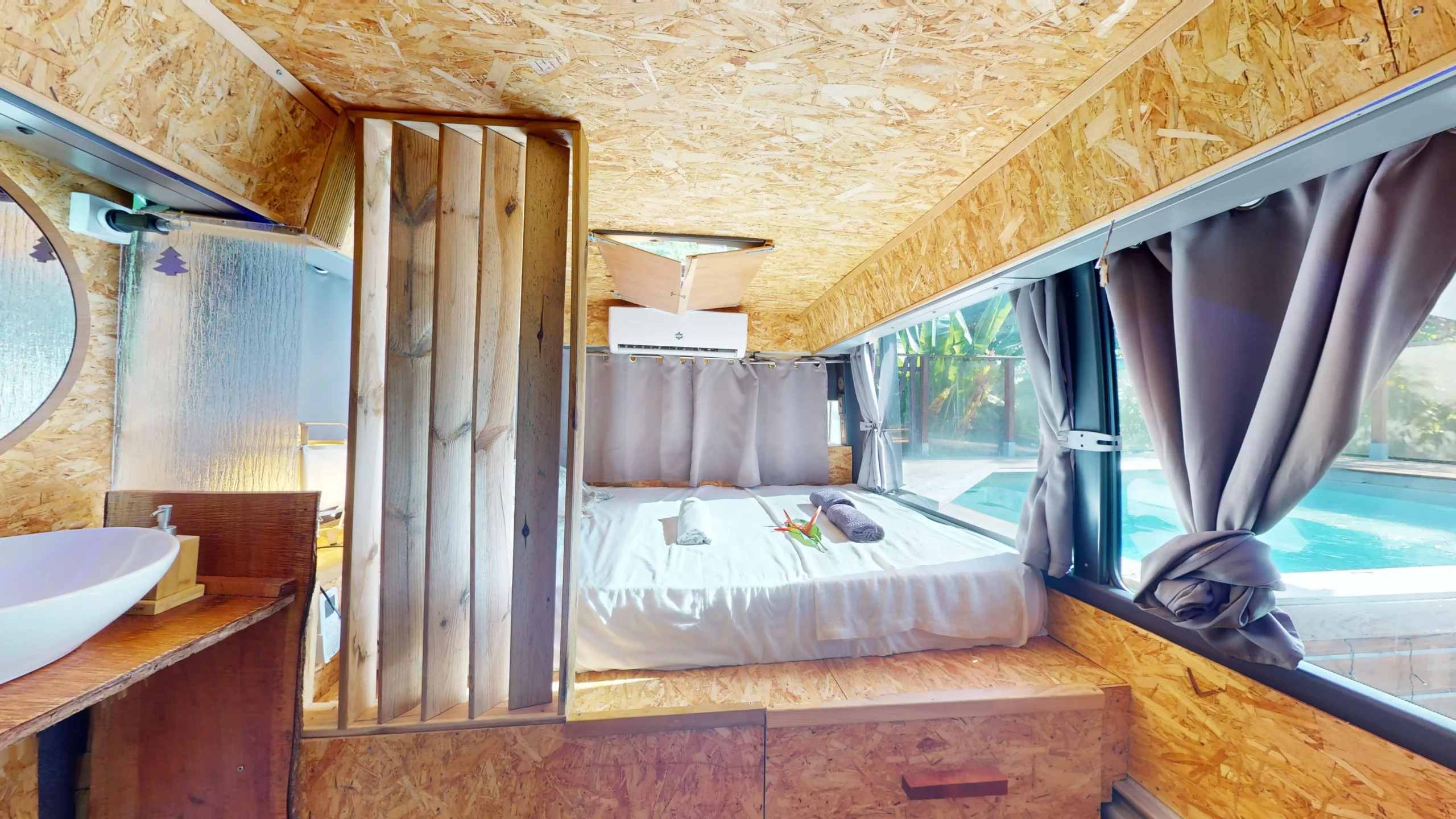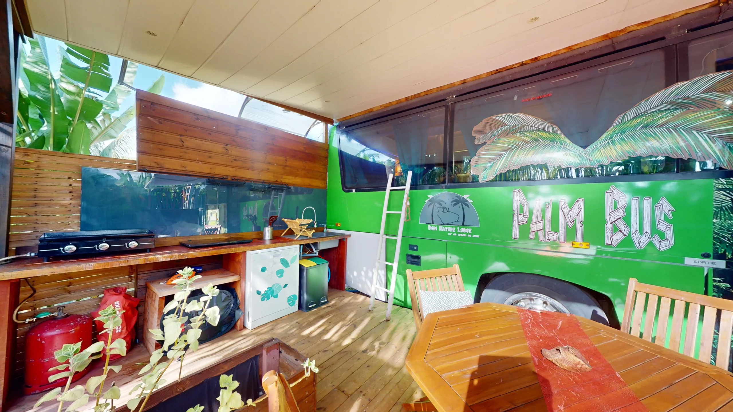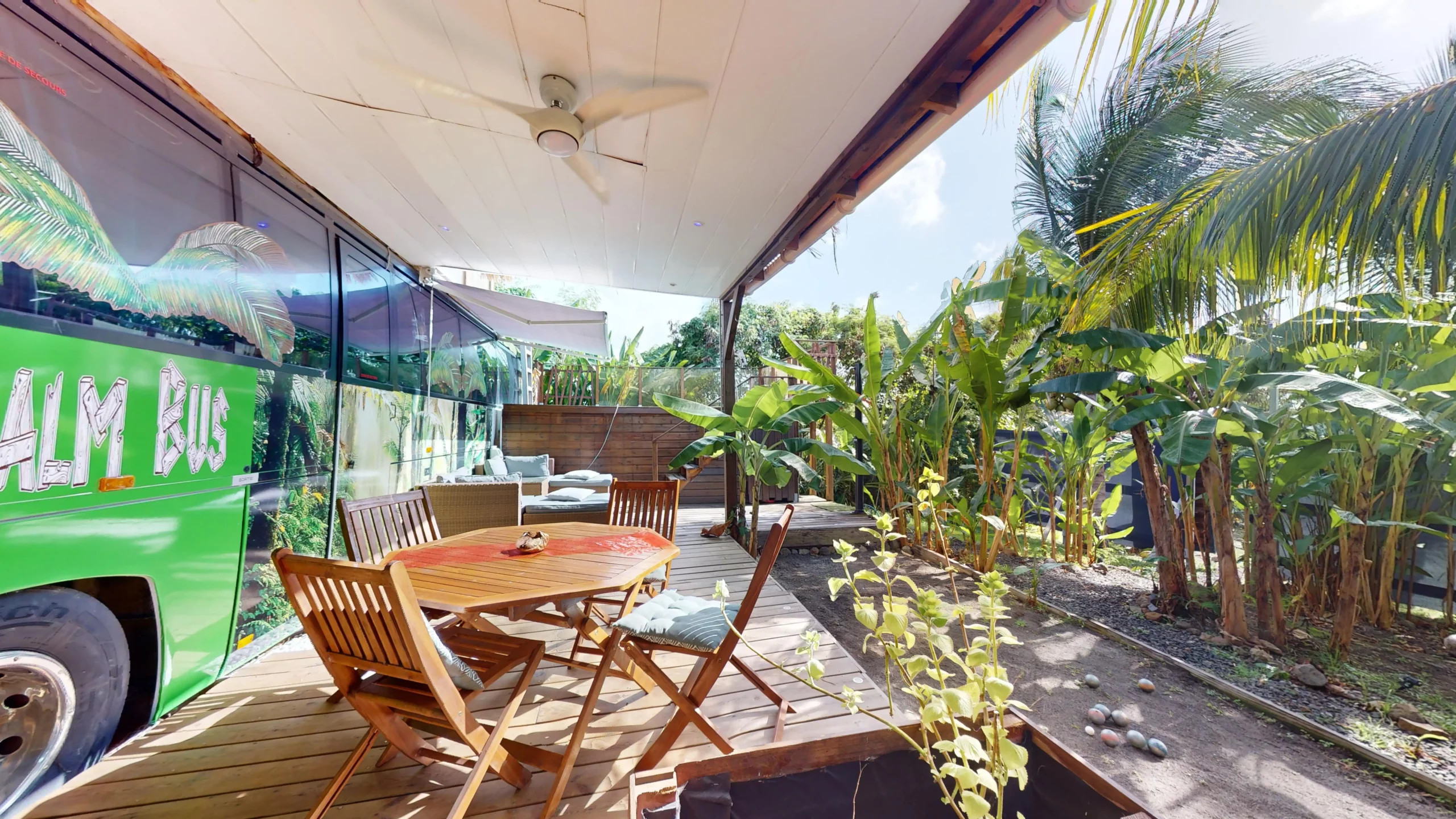 Réveillez-vous dans l’hébergement le plus iconique de Dom Nature : un ancien bus transformé en lodge design au cœur de la Martinique. Mariant charme insolite et confort moderne, il abrite deux suites élégantes, un vaste salon extérieur et une cuisine d’été parfaite pour partager des instants conviviaux en plein air.